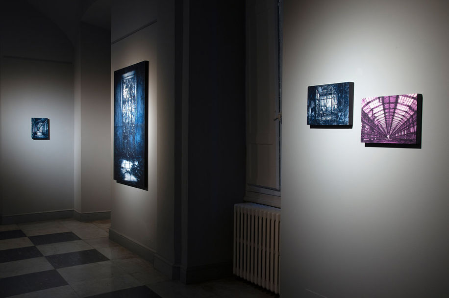 Con la sua consueta precisione tecnica, un tratto netto, quasi chirurgico, e un uso calibrato della luce che scolpisce l’architettura del mondo, l’artista costruisce ambienti in cui l’assenza diventa protagonista. Capannoni industriali abbandonati, corridoi vuoti, impalcature metalliche: luoghi marginali che nella pittura di Chiesi vengono trasfigurati in paesaggi interiori. Le linee si fanno pensiero, le ombre meditazione, gli spazi sospesi diventano varchi verso un silenzio più profondo; la natura ritorna nei luoghi lasciati dall’uomo e riappare come dynamis genitrice del mondo.